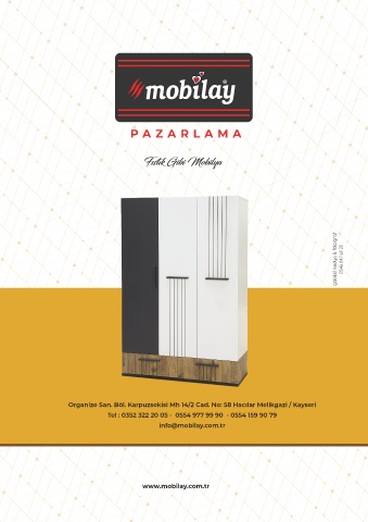 Fıstık Gibi Mobilya Fıstık Gibi Mobilya Organize San. Böl. Karpuzsekisi Mh 14/2 Cad. No: 58 Hacılar Melikgazi / Kayseri Tel : 0352 322 20 05 - 0554 977 99 90 - 0554 159 90 79 info@mobilay.com.tr www.mobilay.com.tr www.mobilay.com.tr