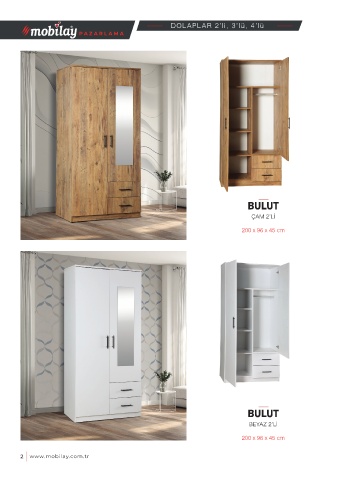 DOLAPLAR 2’li, 3’lü, 4’lü P AZARL AMA BULUT ÇAM 2’Lİ 200 x 96 x 45 cm BULUT BEYAZ 2’Lİ 200 x 96 x 45 cm 2 www.mobilay.com.tr