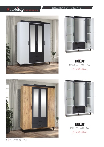 DOLAPLAR 2’li, 3’lü, 4’lü P AZARL AMA BULUT BEYAZ - ANTRASİT - 4’LÜ 210 x 160 x 45 cm BULUT ÇAM - ANTRASİT - 4’LÜ 210 x 160 x 45 cm 6 www.mobilay.com.tr
